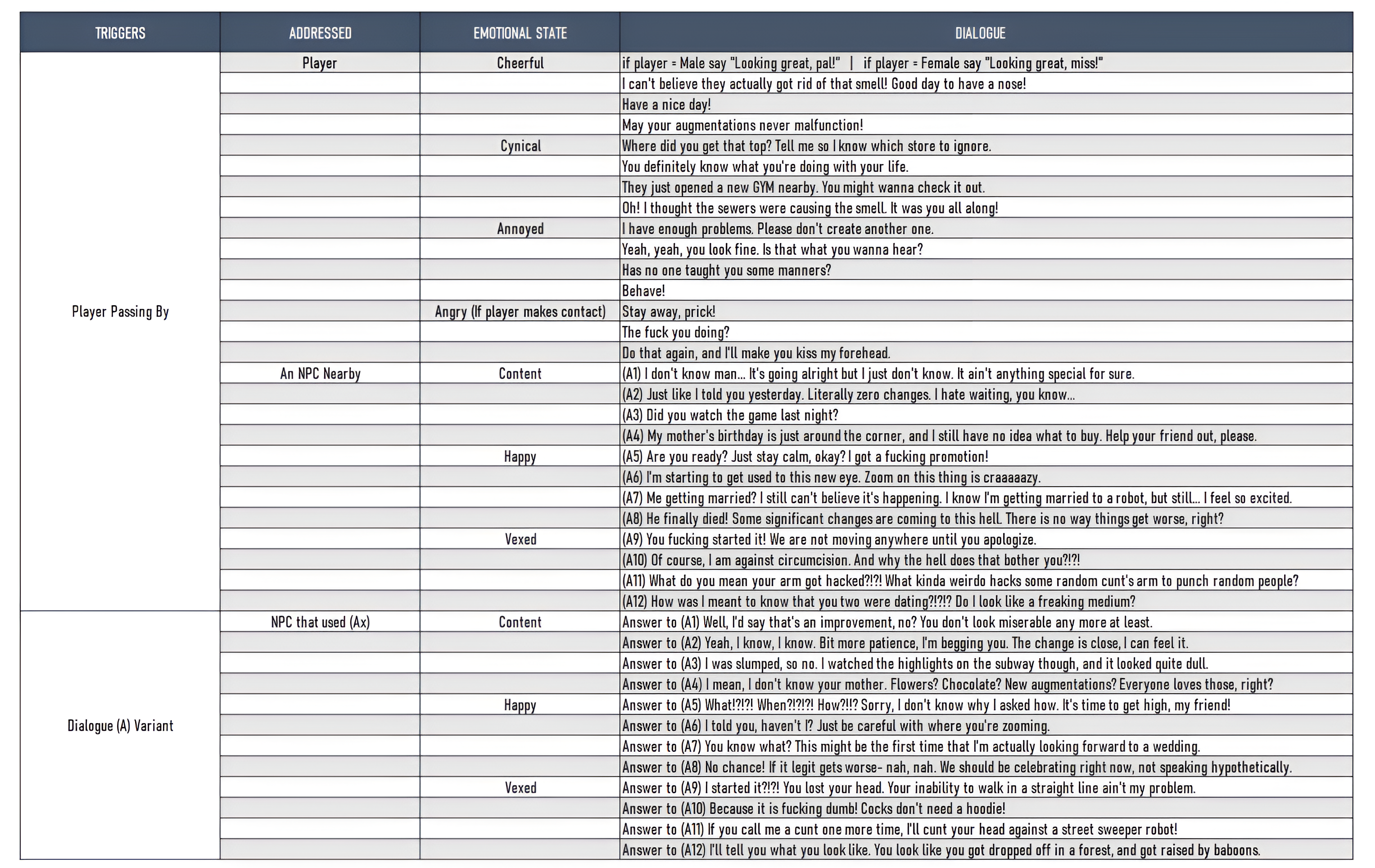 NPC dialogue for the residents of a smelly dystopian city.